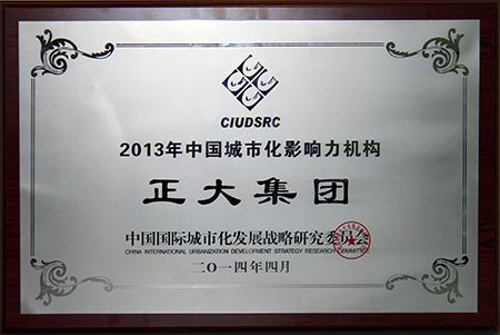 正大集團榮膺“2013年中國城市化影響力機構”榮譽稱號