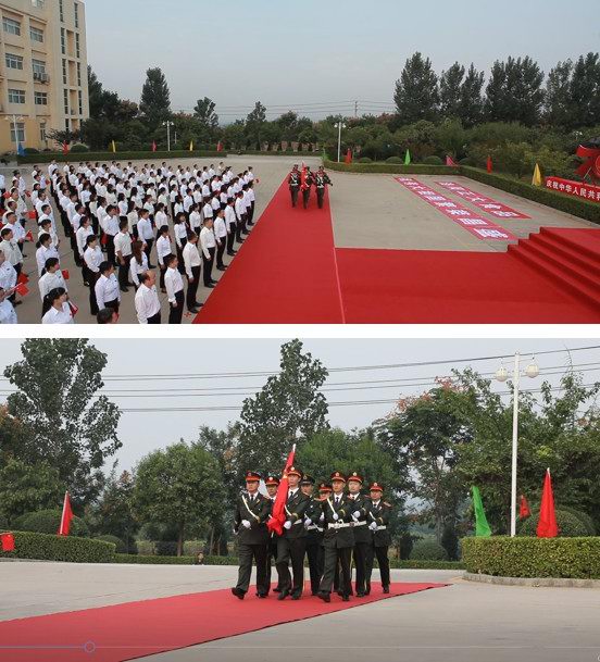 早上八時零八分,升旗儀式正式開始,在雄壯的軍樂聲中,颯爽英姿的護旗手邁著整齊的步伐護送國旗走向升旗臺。雄壯的《義勇軍進行曲》響起,鮮艷的五星紅旗冉冉升起,迎風飄揚,全體員工手持鮮艷的五星紅旗行注目禮,共同高唱國歌,表達對新中國的崇敬和熱愛。