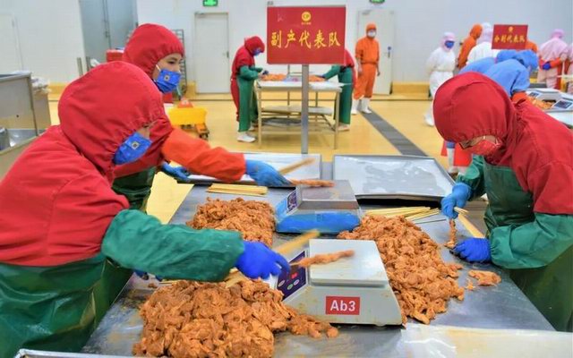 為提升生產加工效率讓基層員工有展現自我的機會形成“比、學、趕、幫、超”的氛圍,本次競賽共分為2個項目:小酥肉原料肉切條比賽和藤椒豬肉串穿串比賽。食品事業部各車間分別派出6名員工組成代表隊參與兩項比賽,在規定時間內根據加工產品的產量與合格率由現場品管進行打分,***終兩項比賽得分相加決出本次競賽的總分和排名。